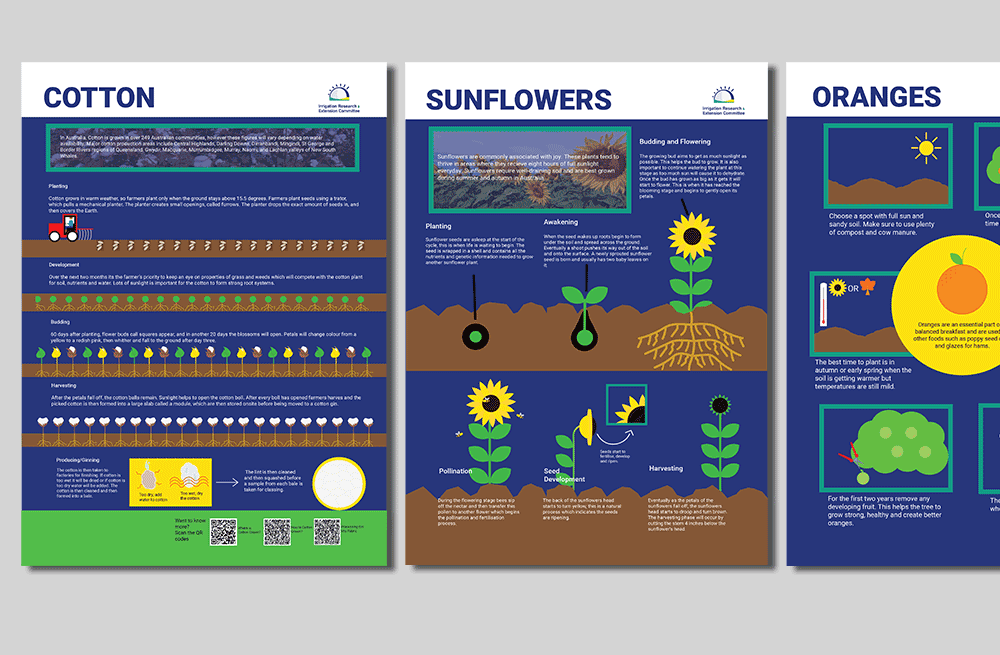 For my Deakin FreelancingHUB Internship I was briefed to create an educational poster series for our client, The Irrigation Research and Extension Committee.